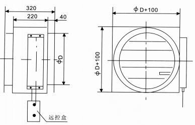 排煙防火閥 | 電訊號開啟,手動開啟,280℃溫度熔斷器重新關閉,輸出動作電訊號,用于排煙風機吸入口處管道上。 | |