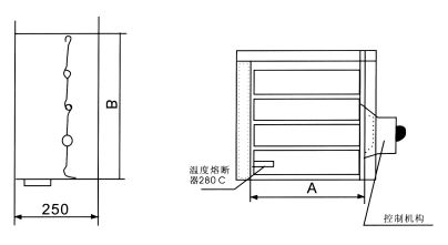 280℃溫度熔斷器自動關閉閥(防火),也可手動關閉,手動復位,可輸出聯動訊號,用排煙管道兼作通風管系統風機入口處。 |