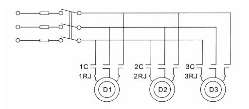 動作,同時微動開關動作,繼電器J工作使排煙風機或加壓風機D1起動,空調風機停止。